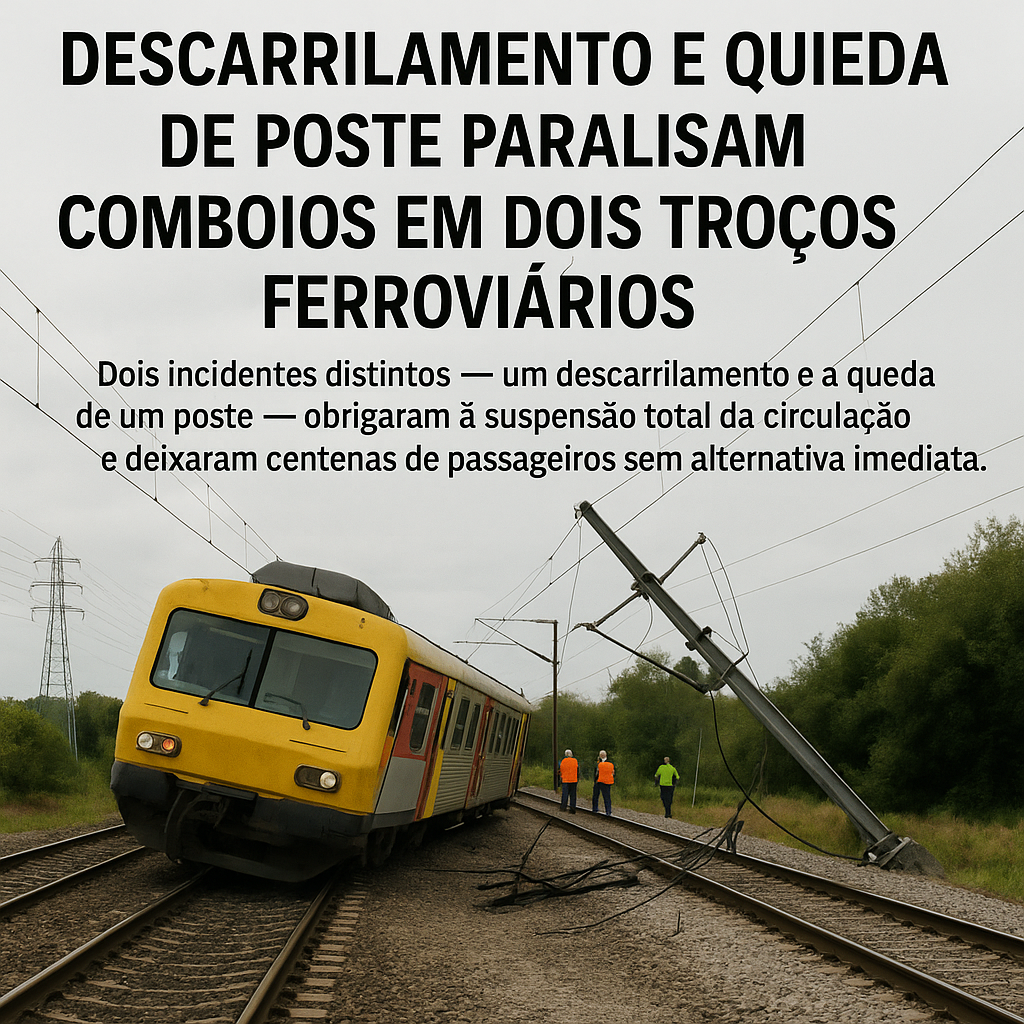 Alerta Dois incidentes distintos — um descarrilamento e a queda de um poste — obrigaram à suspensão total da circulação e deixaram centenas de passageiros sem alternativa imediata.